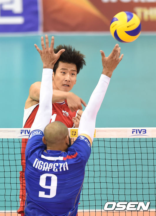지난 2011년 이후 4년 만에 프랑스전 승리를 노렸던 대표팀은 첫 세트를 접전 끝에 따내며 기분 좋게 출발했으나 기세를 이어가지 못하고 내리 세 세트를 허용하며 무너졌다. 송명근은 18점을 뽑아내며 분전을 펼쳤지만 승부를 뒤집기에는 어려움이 따랐다.