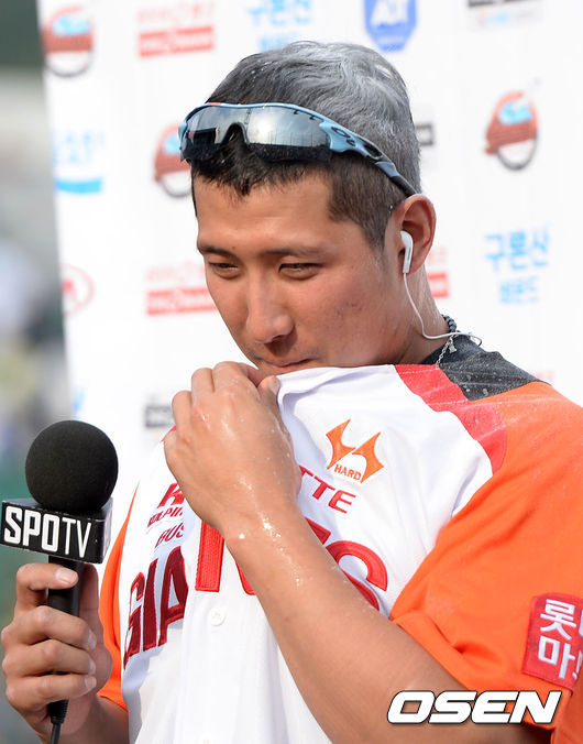 동갑내기 친구다보니 장난도 많이 친다. 지난 주에는 정훈과 황재균이 한 번씩 생각지도 못한 걸 뒤집어썼다. 먼저 당한 건 정훈, 지난 달 26일 인천SK 행복드림구장에서 열린 SK전에서 데뷔 첫 연타석홈런을 날린 뒤 수훈선수에 선정됐다. 당시 수비때문에 마음고생이 심했던 정훈은 진지한 목소리로 방송인터뷰에 임했는데, 갑자기 황재균이 케첩통을 들고 난입해 머리위에 뿌렸다.