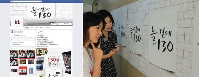 KT는 그룹블로그와 함께 오픈한 페이스북에서 130소셜이벤트를 진행한다. 오른쪽은 KT가 그룹블로그 홍보를 위해 티저 캠페인으로 5월 18일부터 31일까지 ‘늘 곁에 130’포스터를 80개 대학, 서울 주요 시내에 부착했다. / KT 제공