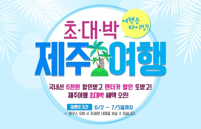 해당 이벤트 기간 내 국내선 항공권을 예매하는 이는 별도의 신청 및 발급 과정 없이 ▲성인 왕복 6000원(편도 구매 시 3천원), ▲소아 왕복 3000원(편도 구매 시 1500원)의 할인 쿠폰을 자동 제공받고 예매 단계에서 바로 사용할 수 있다.