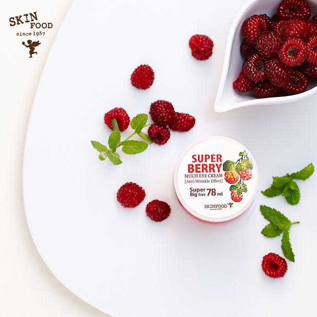 스킨푸드 ‘슈퍼복분자 멀티 아이크림(1만 9,000원/78ml)’은 매일 관리가 필요한 눈가 피부를 탄력 있게 관리해주는 대용량 아이크림으로, 항산화효과가 우수한 블랙베리추출물, 비타C복합추출물, 산딸기추출물 등을 함유하고 있어 피부 노화 예방 및 주름 개선에 도움을 준다.