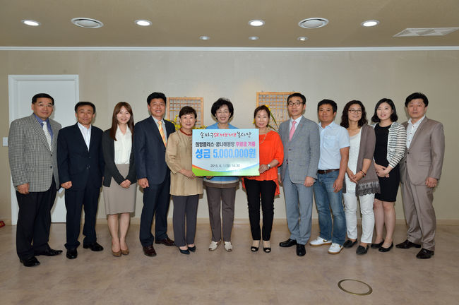 프로농구 서울 SK(단장 이성영)는 지난 1일, 송파구청을 방문해 지난 2014-2015시즌 동안 적립한 러브러브봉사단 기금 중 500만 원을 박춘희 송파구청장에게 전달했다.