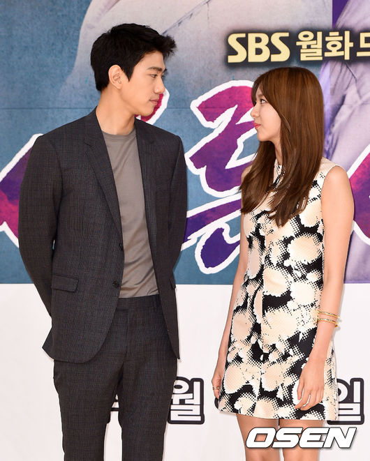 배우 유이와 성준이 포토타임을 갖고 있다.