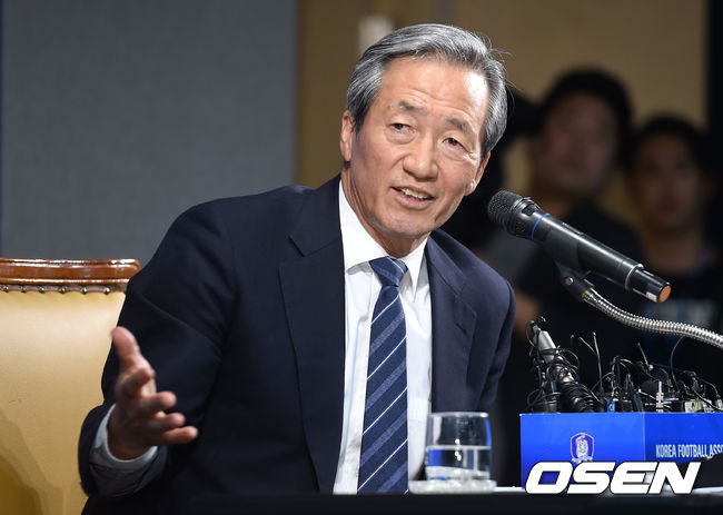 정몽준 대한축구협회 명예회장이 최근 불거진 국제축구연맹(FIFA)의 부패 스캔들과 제프 블라터 FIFA 회장의 사임에 대한 긴급 기자회견을 3일 오후 서울 신문로 축구회관에서 가졌다.