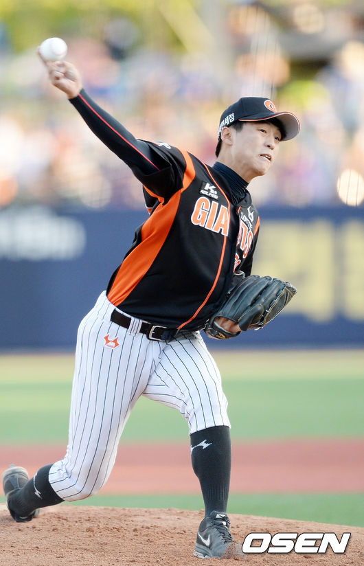 3일 오후 경상북도 포항시 남구 포항야구장에서 열린 '2015 타이어뱅크 KBO 리그' 롯데 자이언츠와 삼성 라이온스의 경기, 롯데 선발 구승민이 힘차게 공을 뿌리고 있다.
