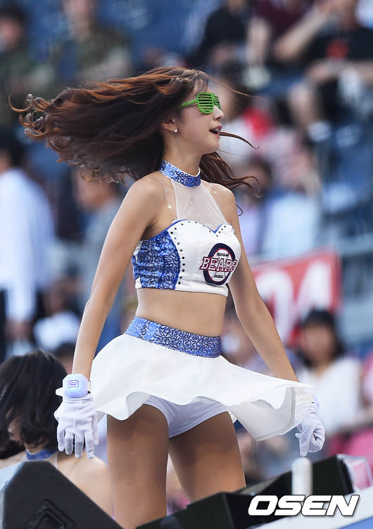 3일 오후 서울 잠실야구장에서 열린 '2015 타이어뱅크 KBO 리그' 두산 베어스와 KIA 타이거즈의 경기, 치어리더가 멋진 공연을 펼치고 있다.