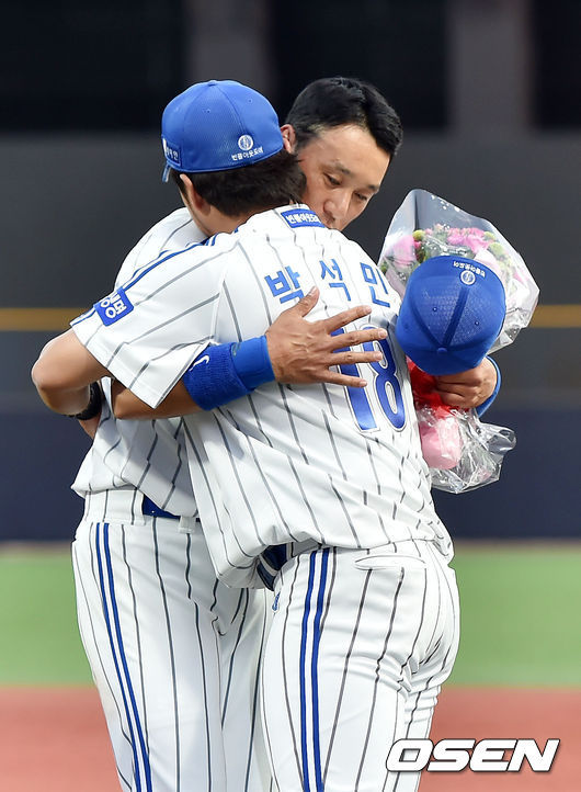 "승엽이형이 45살까지 현역 생활을 했으면 좋겠다"는 박석민은 "승엽이형에게 본받을 게 너무나 많다. 예전에도 자주 이야기했었는데 너무 많아서 꼽기 힘들 정도"라고 말했다.