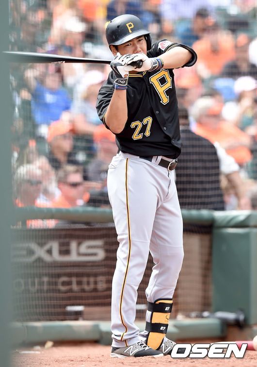 9회초 피츠버그 공격 1사 1루 상황 강정호가 대기 타석에서 타격을 준비하고 있다./dreamer@osen.co.kr