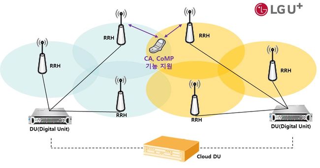 클라우드 DU는 기지국내 디지털 정보 처리장비 DU(Digital Unit)를 클라우드 방식으로 연결해 단일 기지국 서비스 커버리지 내에서만 구현되는 CA 및 CoMP 기능을 기지국간 경계지역에서도 동일하게 제공하는 기술이다.