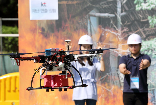 한편 KT에서는 이번 행사에서 드론에 장착된 카메라와 독자적인 영상인식기술로 재난에 처한 사람을 정확히 찾아내어 현장의 상황을 확인 후 실시간으로 서버에 영상을 전달하는 시연을 선보여 향후 재난 및 위급 상황에서 활용할 수 있을 것으로 보인다.