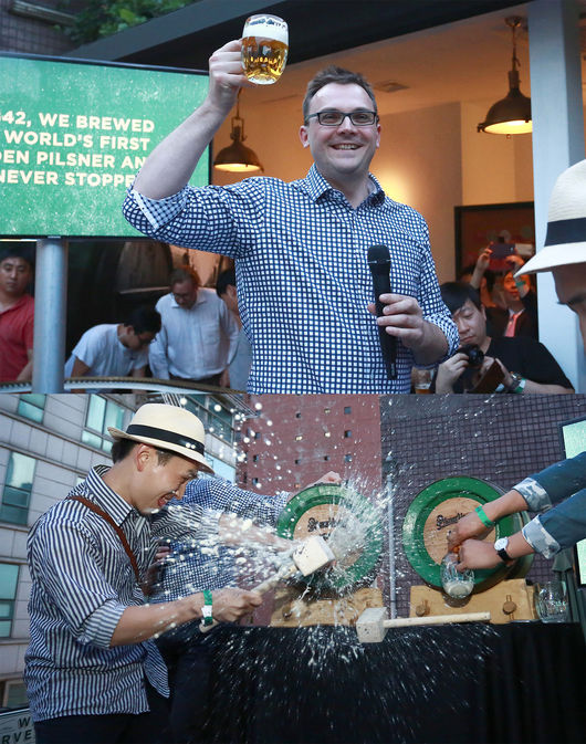 참가자들의 카운트다운에 맞춰 나무 오크통을 망치로 깨 맥주를 따르는 필스너 우르켈만의 전통 이벤트인 우든 배럴 퍼포먼스도 소개됐다. 맥주와 함께 즐길 안주로는 체코식 돼지 족발인 ‘꼴레뇨’가 곁들여졌다.