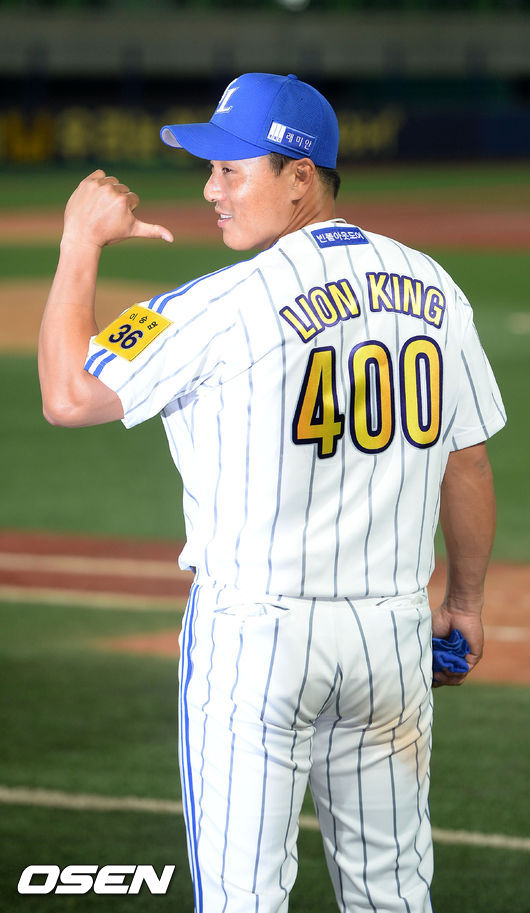 유니폼 등쪽에는 공히 ‘LION KING 400’이 황금색으로 새겨져 있다. 판매가는 20만원이다. 유니폼은 오는 24일부터 순차 배송될 예정이다.