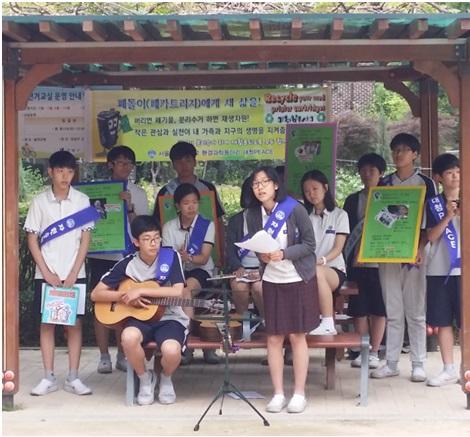 서울 강남구 대청중학교 교내 환경과학동아리 '대청PEACE'가 5일 세계 환경의 날을 맞아 '폐카트리지의 분리수거 및 재활용 권장 캠페인'을 위한 작은 자선음악회를 열었다.