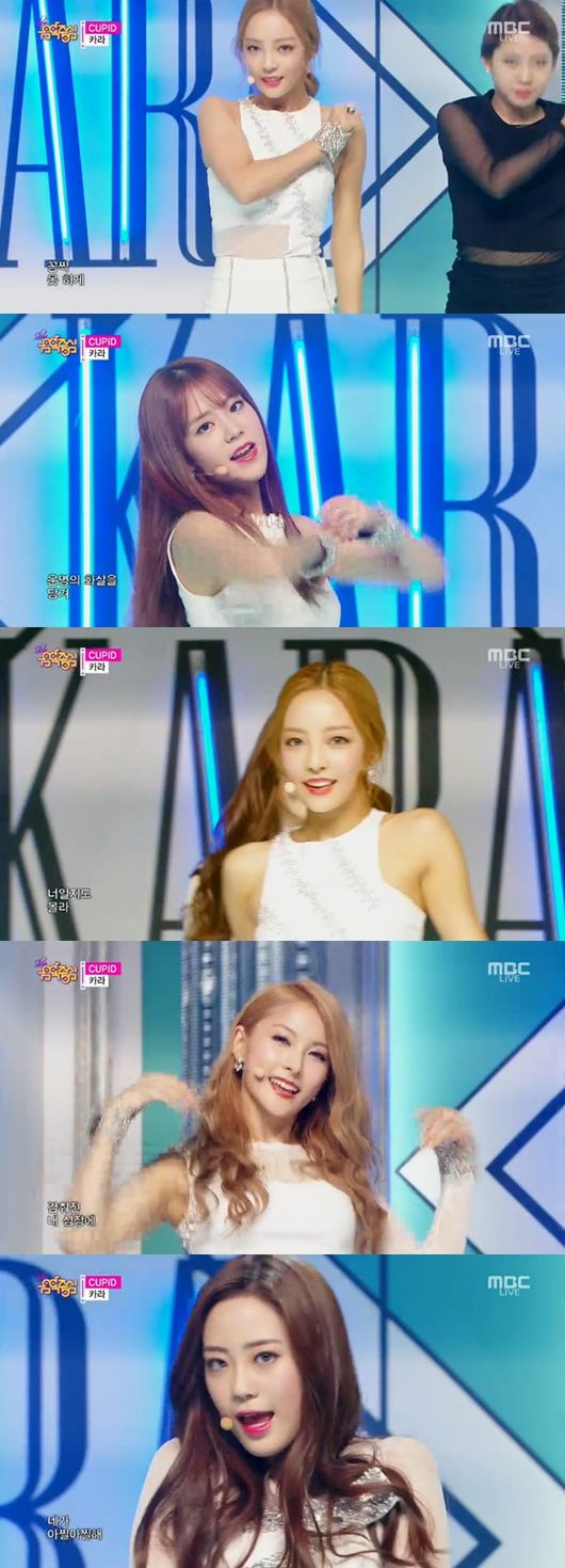 카라는 6일 오후 방송된 MBC 가요프로그램 '쇼! 음악중심'에서 '큐피드(Cupid)'로 컴백 무대를 꾸몄다.