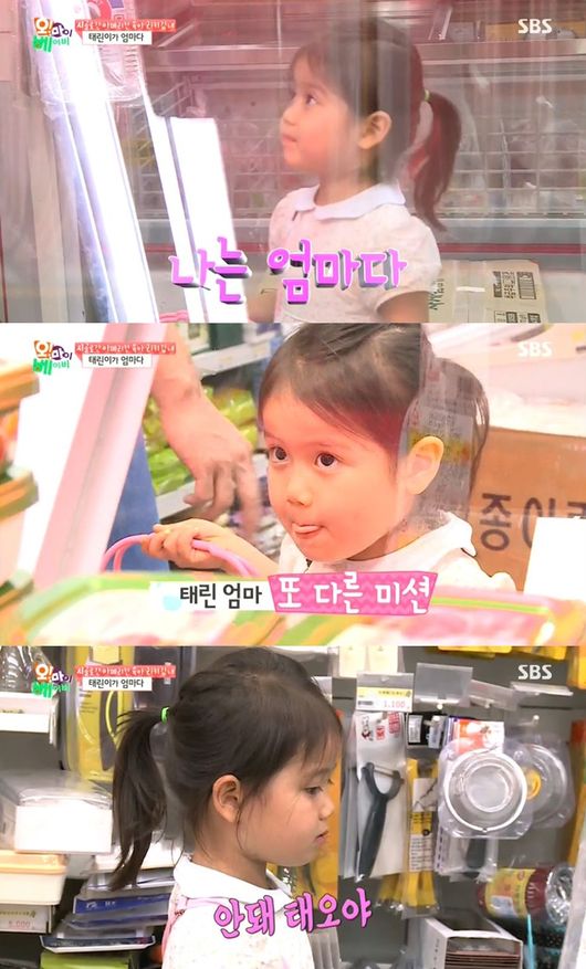 이날 방송에서 태린은 엄마 역할을 자청했다. 마트에 장을 보러 나선 태린은 꼭 필요한 것만 사기 위해 미리 사야할 품목을 적어갔다.