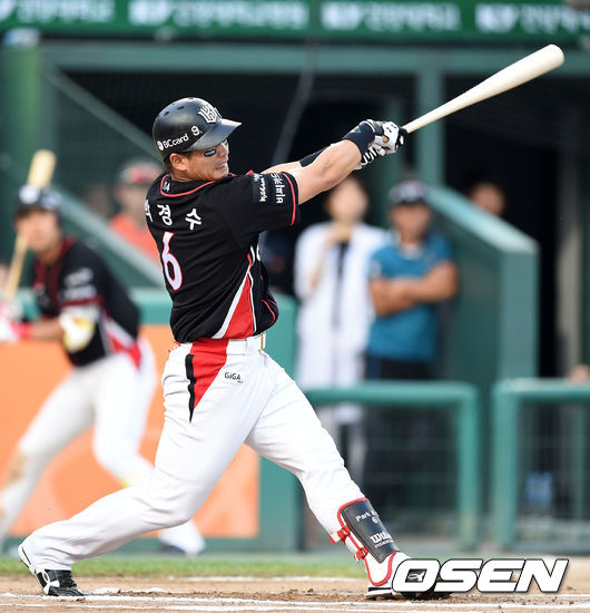 6회초 1사에서 kt 박경수가 좌월 솔로 홈런을 치고 있다.