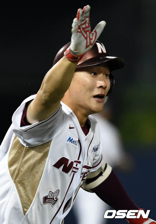6일 오후 서울 목동구장에서 열린 '2015 타이어뱅크 KBO 리그' 넥센 히어로즈와 두선 베어스의 경기 10회말 1사 김하성이 끝내기 솔로포를 치고 기뻐하고 있다.