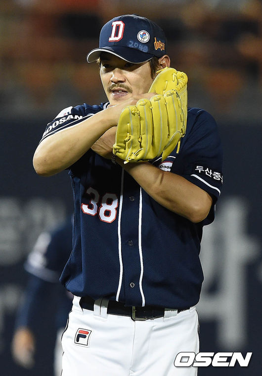 6일 오후 서울 목동구장에서 열린 '2015 타이어뱅크 KBO 리그' 넥센 히어로즈와 두선 베어스의 경기 10회말 1사 김하성에게 끝내기 솔로포를 허용한 노경은이 아쉬운 표정으로 마운드를 내려가고 있다.