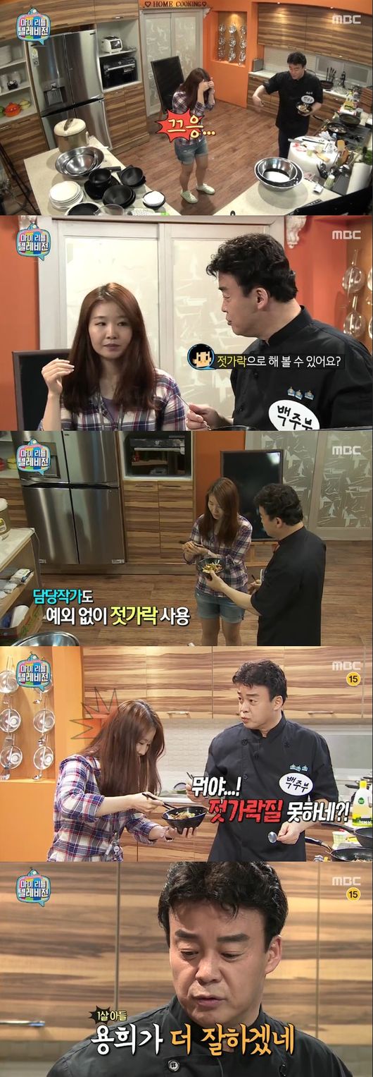 이어 젓가락질을 잘 못하자 “젓가락질 못하네. 아이 참”이라고 또 다시 구박해 웃음을 자아냈다.