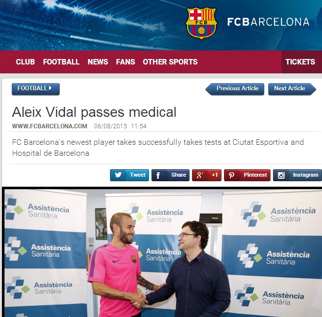 알레이스 비달(26, 세비야)이 FC 바르셀로나의 메디컬 테스트를 통과하며 입단을 확정지었다. 이제 공식 발표만 남은 상황이다.
