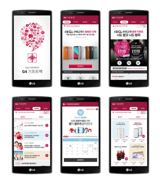 LG전자는 ‘G4’에 선 탑재한 ‘기프트팩’ 앱에도 혜택을 강화할 예정이다. ‘기프트팩’은 LG전자가 업계 최초로 시도하는 선 탑재 이벤트 앱으로서, 매일 게임, 퀴즈, 설문조사 등 콘텐츠를 제공하고 푸짐한 경품도 준다.