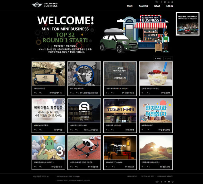2라운드 진출 16개 팀은 오는 23일 MINI 홈페이지와 'MINI FOR MINI BUSINESS' 공식 홈페이지, 그리고 MINI 공식 블로그를 통해 발표된다.
