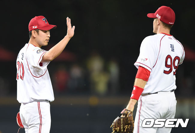 경기종료후 승리한 KIA의 윤석민과 필이 기쁨을 나누고 있다./greenfield@osen.co.kr