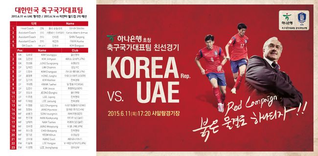 한편 남자 A대표팀의 UAE전은 11일(한국시간) 오후 6시 20분 말레이시아 콸라룸푸르 샤알람 경기장에서 펼쳐지며, SBS TV가 중계한다.