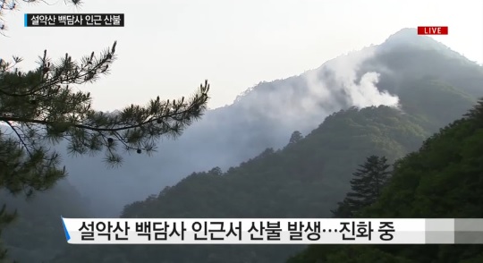 [OSEN=이슈팀] 강원도 백담사 인근 설악산 국립공원 내에서 산불이 발생해 이 시간 현재 진화작업을 벌이고 있다.