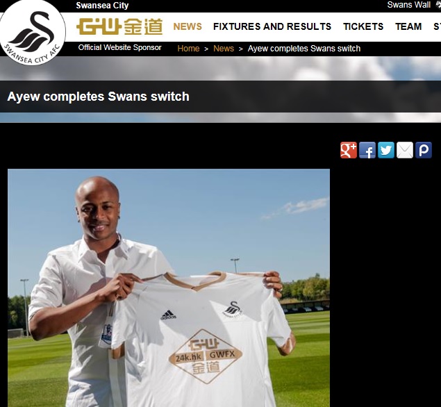 기성용의 소속팀 스완지 시티가 가나 대표팀의 간판 공격수 안드레 아예우(26)를 영입했다.
