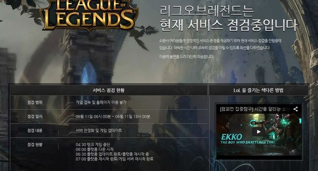 19일 리그오브레전드(이하, 롤) 제작사 라이엇게임즈 측은 공식 홈페이지를 점검을 알리는 상태로 변경하고 본격적인 롤점검에 들어갔다.