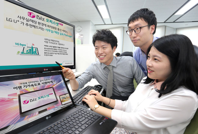 'U+Biz 오피스넷 광(光)기가'는 업무 중 클라우드 활용이 많아지고, 기가바이트(GB) 단위의 트래픽 전송이 갈수록 늘어나는 상황에서 중소사업자 및 소상공인들이 부담 없이 기가인터넷을 이용할 수 있어 업무효율과 생산성을 높일 수 있을 것으로 기대된다.
