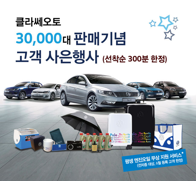 폭스바겐의 공식딜러 클라쎄오토가 누적 판매 3만 대 돌파를 기념한 이벤트를 준비했다.