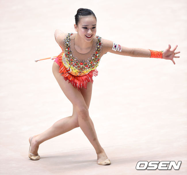 리듬체조 기대주 천송이는 리본(16.600)과 곤봉(16.400)점을 합산해 총점 49.700점을 받았다. 2014 인천 아시안게임서 손연재와 함께 단체전 은메달을 땄던 이다애는 리본(16.000)과 곤봉(16.600)에서 16점대를 기록했다.
