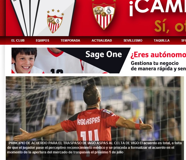 이아고 아스파스(28)가 세비야를 떠나 친정팀 셀타 비고로 이적하게 됐다.