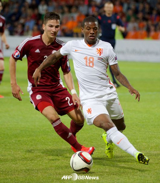 네덜란드는 13일(한국시간) 새벽 라트비아 리가의 스콘토 스타디움서 열린 라트비아와의 2016 유럽축구선수권대회(유로 2016) A조 조별리그 6차전서 2-0으로 승리했다. 승점 3을 추가한 네덜란드는 터키를 따돌리고 아이슬란드와 체코에 이어 조 3위 자리를 되찾았다.
