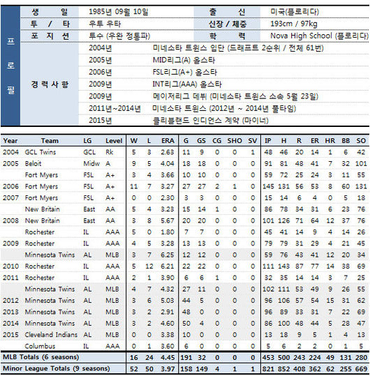 미국 플로리다 출신의 스와잭은 우완 정통파 투수로 2009년 메이저리그에 데뷔한 후 지난해까지 미네소타 트윈스에서 활약했다. 올해는 클리블랜드 인디언스에서 뛰었다. 지난 2004년 미네소타의 2라운드 지명을 받은 스와잭은 메이저리그 통산 191경기(선발 32경기)에 등판해 16승 24패, 평균자책점 4.45 의 성적을 올렸다.