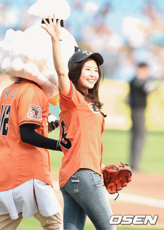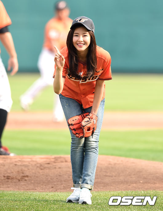 경기에 앞서 MBC '압구정 백야'에서 열연한 배우 박하나가 시구를 선보였다. 스키니진에 한화 유니폼을 입고 마운드에 오른 박하나는 깜찍한 미소와 함께 포수와 사인을 주고 받으며 눈길을 끌었다. /jpnews@osen.co.kr