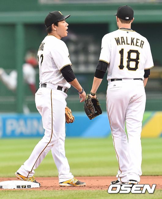 경기 종료 후 피츠버그 유격수 강정호와 2루수 닐 워커가 승리의 인사를 나누고 있다./dreamer@osen.co.kr