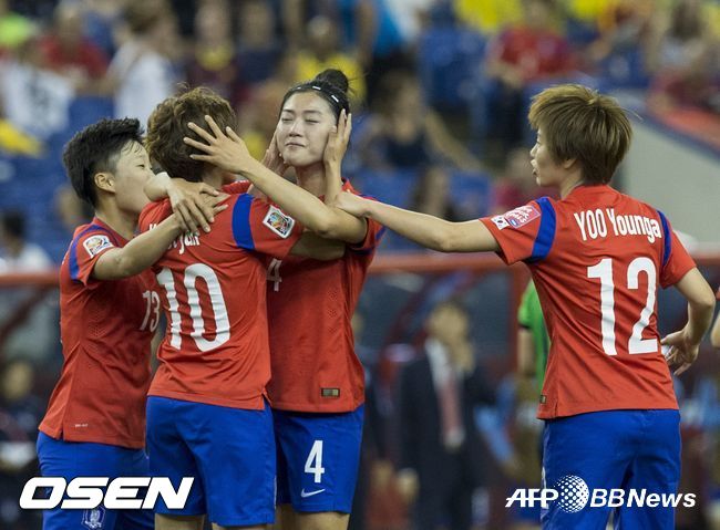 한국은 브라질전과 마찬가지로 유영아가 최전방에 서고 지소연, 전가을, 강유미가 뒤를 받치며 골사냥에 나섰다. 박은선은 선발에서 제외됐다.
