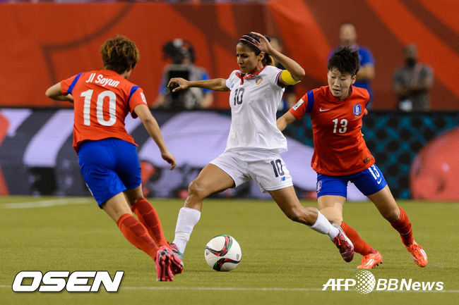 윤덕여 감독이 이끄는 여자축구대표팀은 14일 캐나다 몬트리올 올림픽 스타디움에서 벌어진 2015 캐나다 월드컵 E조 조별리그 2차전에서 후반 아쉬운 동점골을 허용하며 2-2로 비겼다. 1무 1패가 된 한국은 남은 스페인전에서 반드시 이겨야 16강에 진출할 수 있는 위기에 놓였다. 코스타리카(2무)는 브라질과 마지막 경기를 남겼다.