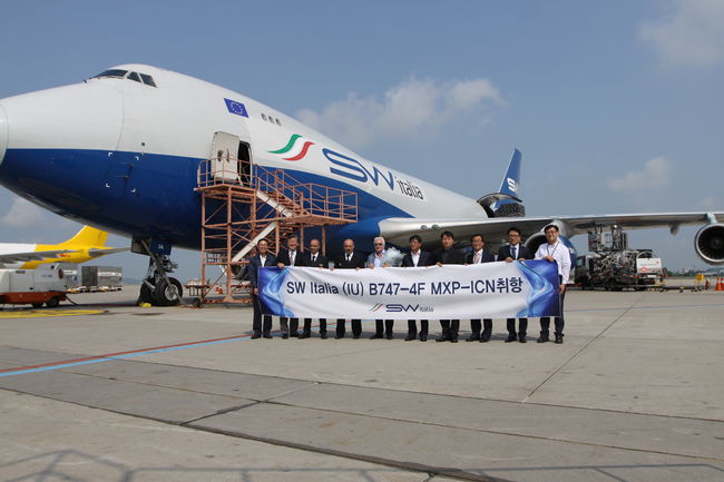 인천국제공항공사(사장 박완수)는 14일 오전 인천공항 화물계류장에서 실크웨이 이탈리아 항공의 신규 취항을 축하하는 기념행사를 개최했다. 이번 행사에는 프란체스코 리바우도 실크웨이 이탈리아 항공 사장, 누리드 알리예브 실크웨이 웨스트 항공 한국지점장, 임병기 인천공항공사 복합도시사업처장 등이 참석해 취항을 축하했다.