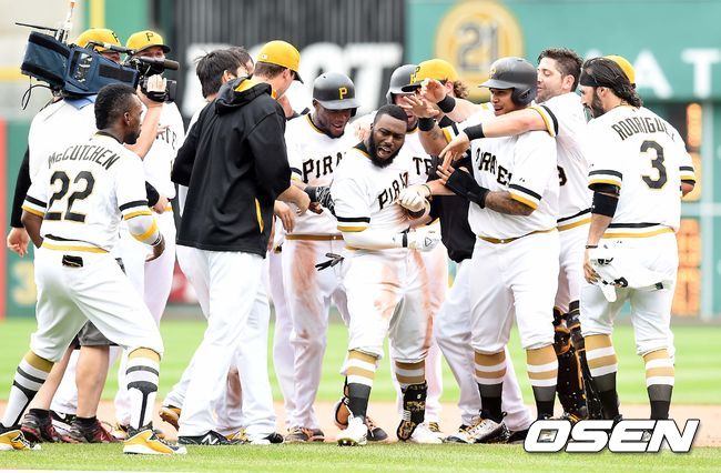 끝내기타를 날린 피츠버그 조시 해리슨이 동료들과 기뻐하고 있다./dreamer@osen.co.kr