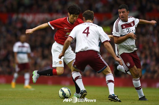 지난 4일(현지시간) 맨체스터 유나이티드와 바이에른 뮌헨이 영국 맨체스터 올드 트래포드에서 자선 경기를 펼쳤다. 양팀의 레전드가 출전한 이날 경기서는 '산소탱크' 박지성이 나서며 큰 관심을 받았다.