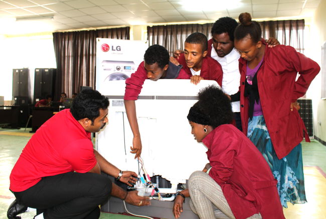 LG전자 서비스 명장과 임직원들은 15일(현지 시각)부터 1주일간 에티오피아 수도 아디스아바바에 위치한 ‘LG-KOICA 희망직업훈련학교’를 방문해 교사와 학생 100여명에게 ‘서비스 명장 기술 특강’을 진행한다. LG전자의 전자 제품 핵심 기술을 전수해 현지 전문 기술 인력을 양성하겠다는 취지다.