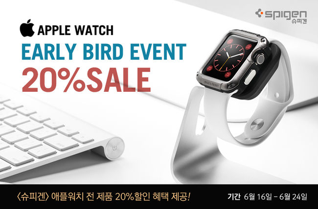 슈피겐은 이번 신제품 출시를 기념해 오는 24일까지 11번가, 지마켓, 옥션 및 스토어팜 등 다양한 오픈마켓을 통해 '애플워치! 얼리버드 이벤트'를 실시한다. 새롭게 선보이는 애플워치 스탠드 'S330'를 비롯해 케이스 및 액정보호필름 등 슈피겐의 프리미엄 애플워치 액세서리를 구입하는 모든 고객에게 20% 할인혜택을 제공한다.