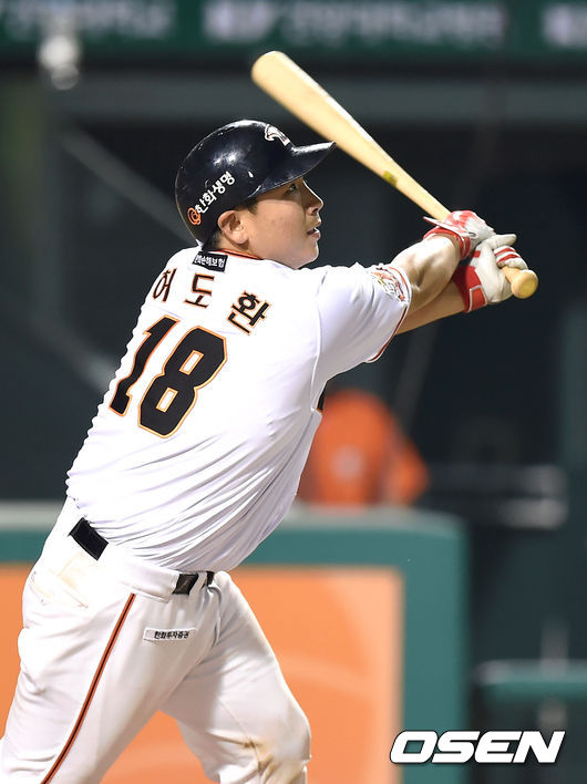 한화에 와서 매순간 열심히 하는 모습은 보는 이로 하여금 호감을 갖게 만든다. 김성근 감독도 "사구 이후 1루로 달려가는 건 허도환이 제일 빠를 것"이라며 허허 웃었다. 허도환은 "태균이형이나 용규처럼 타율이 높거나 잘 치는 것도 아닌데 몸에 맞으면 '고맙습니다'하고 나가야 한다"며 껄껄 웃어보였다.