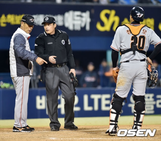대신 박기택 2루심이 구심으로 이동하고, 이날 대기심이었던 윤상원이 2루심 자리를 채웠다. 경기는 1회말 현재 롯데가 2-0으로 앞서 있다.