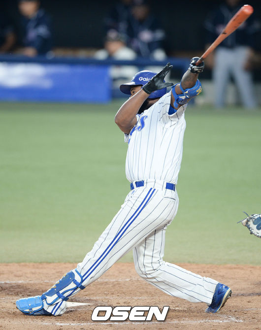 17일 오후 대구구장서 열린 ‘2015 타이어뱅크 KBO 리그’ 삼성 라이온즈와 두산 베어스의 경기,3회말 무사 만루 삼성 나바로가 만루홈런을 날리고 있다.