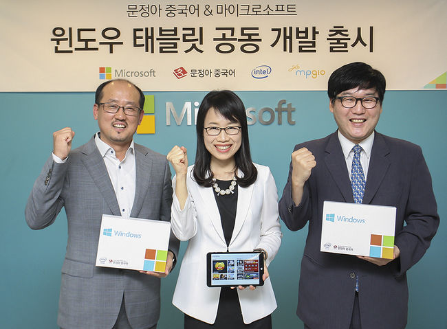 한국 마이크로소프트(MS)는 중국어 교육 전문 기업 문정아중국어(대표 서연태) 인텔코리아와 어학 교육 지원을 위해 협력한다. 이를 통해 문정아중국어는 윈도우 태블릿 총10만대를 도입해, 오는 20일부터 올패스 평생회원반 수강생들에게 학습용 앱이 탑재된 엠피지오의 윈도우 태블릿 '문정아중국어 탭(Tab)'을 제공할 계획이다.